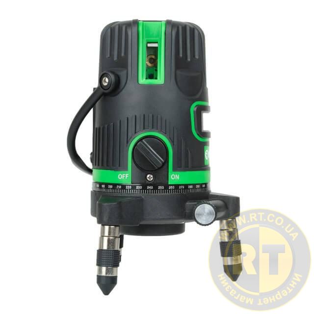 Кут самовирівнювання ± 3°, при перевищенні цього значення рівень подає звуковий сигнал, а промені моргають. Лазерний рівень ротаційний - обертається на 360 градусів на металевій основі.