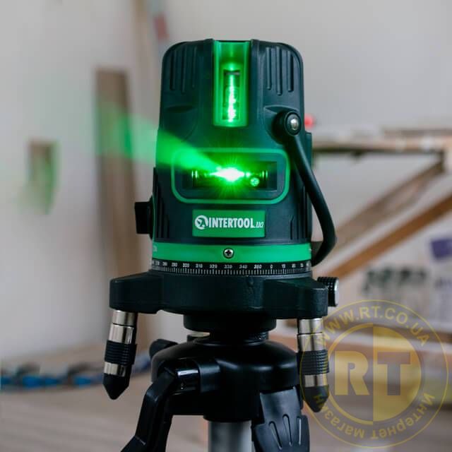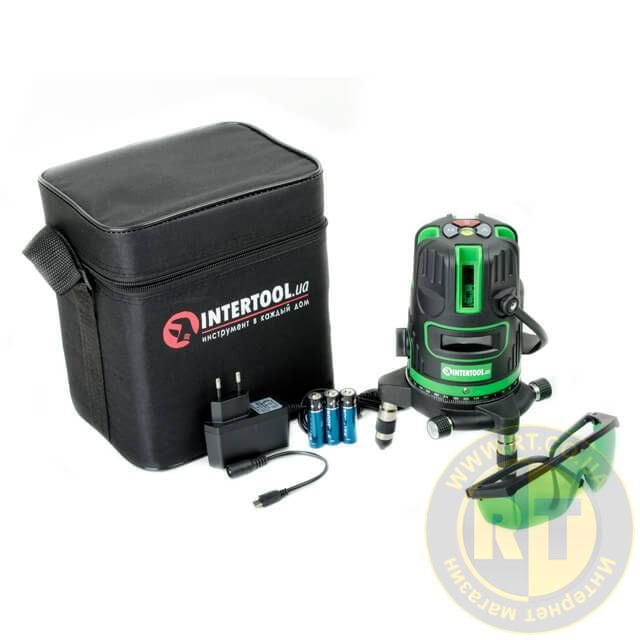 Рівень лазерний 5 лазерних головок, зелений лазер, звукова індикація. INTERTOOL MT-3008