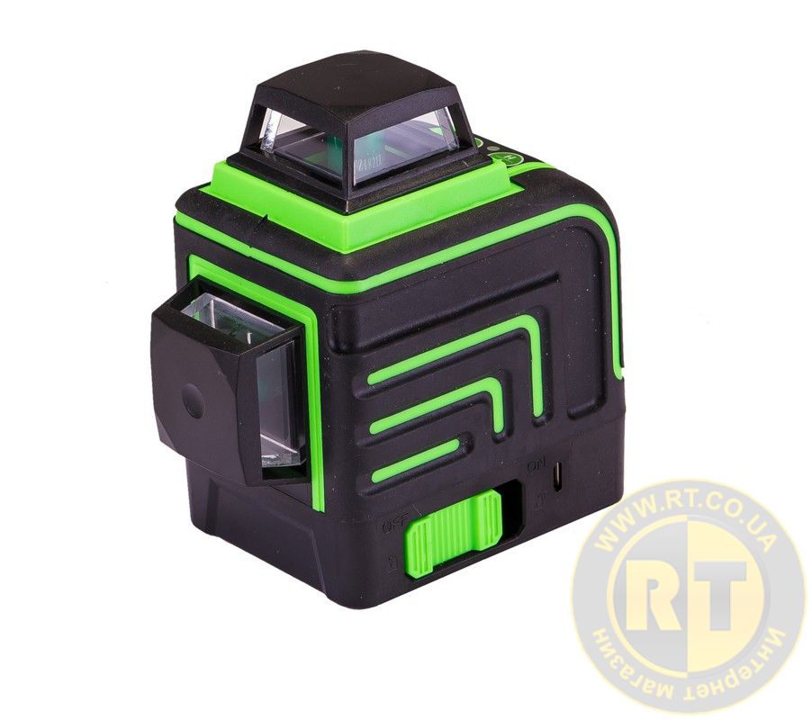 : зелений (510 нм) ; пилу та бризок • Живлення: акумулятор Li-ion або 3 батарейки AA • Комплектація: рівень, акумулятор, сумка Переваги: • Повне охоплення горизонталі та двох вертикалей • Зелений лазер - до 4× яскравіше червоного • Надійний корпус із захистом IP54 • Універсальне живлення • У Універсальне харчування інтер'єру, плиточників та оздоблювальників. • дальність променя: 10 м; • точність нівелювання : ± 0.2 мм / м ; AAx3 та Li-ion акумулятор у комплекті
