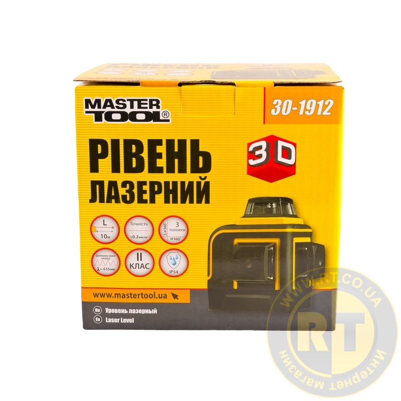 Рівень лазерний 10 м ±0.2 мм/м 3 гол H/V/H+V H360°/2хV360° ±3° RED/635 нм клас II IP54 Li-ion/ААх3 сумка MASTERTOOL 30-1912