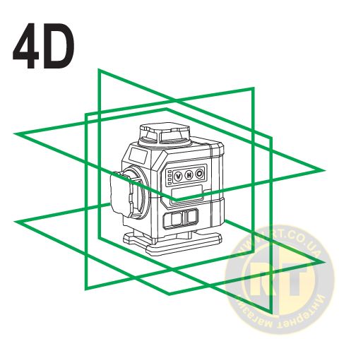 Самонівелювальний 4D чотириплощинний лазерний нівелір у міні-версії із зеленим променем. Виробляє 16 ліній по чотири на площину.