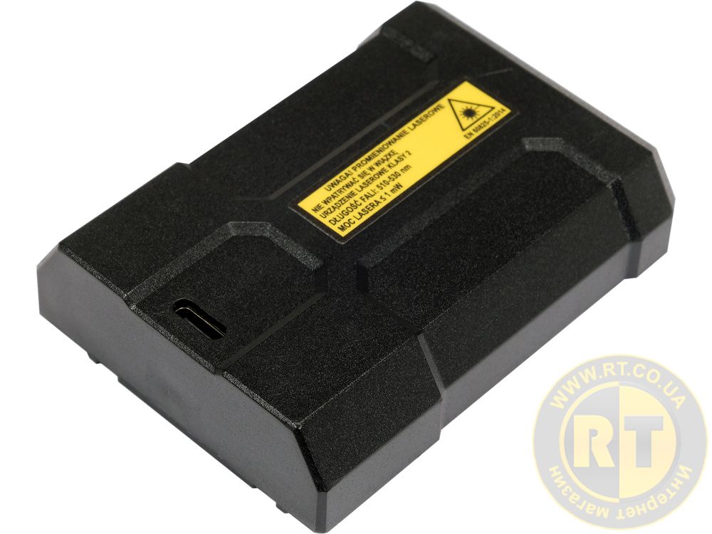 Лазер має три режими яскравості і віконні корпуси, що рухаються. Працює від акумуляторної батареї збільшеної ємності до 4000 мАг.