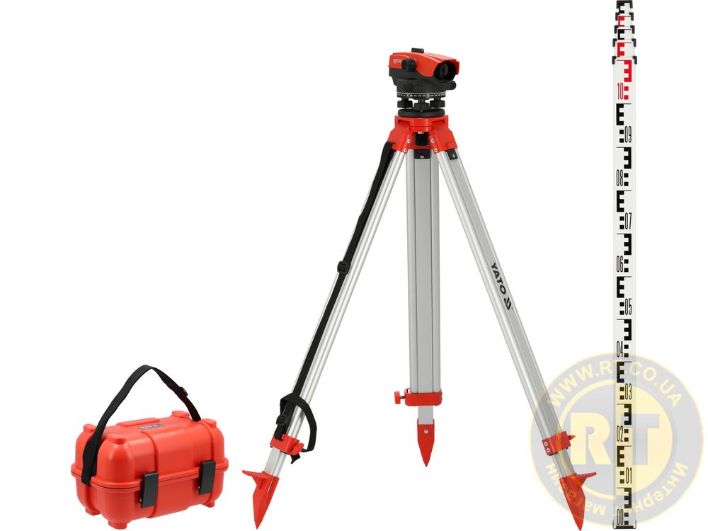 Нівелір опт авто-налаштування. зі штатив і рейк об'єкт Ø = 38мм, крат-32Х радіус-1-55 м, точн-1мм/30м Yato YT-30551