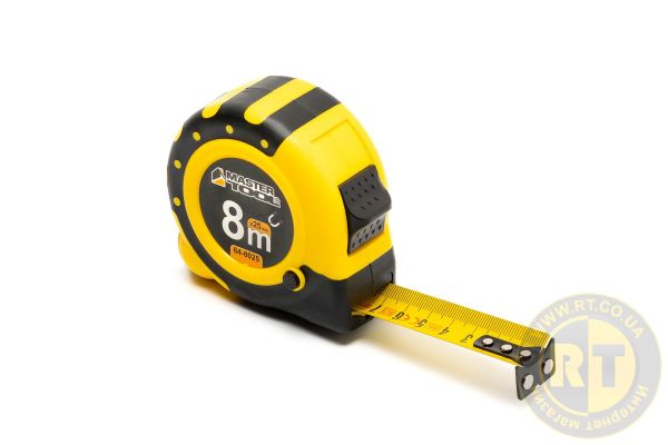 Рулетка 8 м х 25 мм з магнітами 2 фіксатора кнопка STOP покриття TPR нейлонове покриття MASTERTOOL 64-8025