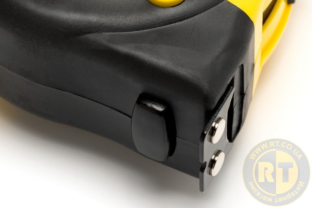 Корпус з TPR-покриттям стійкий до ударів та зручний у руці, а нейлонове покриття стрічки захищає її від стирання та продовжує термін служби. Завдяки магнітному гачку рулетка ідеально підходить для роботи з металевими поверхнями та дозволяє легко виконувати вимірювання навіть однією рукою.