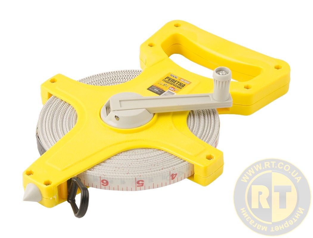 Геодезична рулетка 50 м × 13 мм – оптимальне рішення для точних вимірювань на великих відстанях, забезпечує комфорт та надійність у щоденній роботі. • полотно зі скловолокна