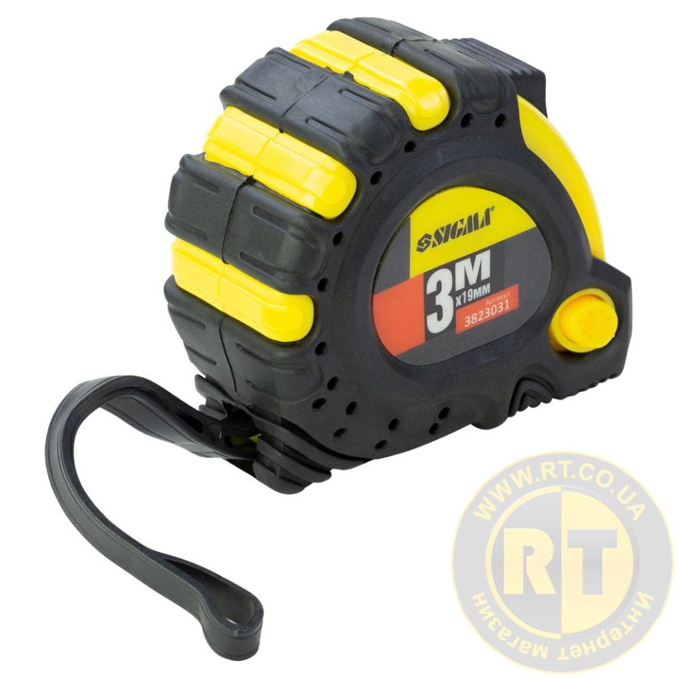 Рулетка магнітна гумова JT фіксатор+гальмо 3м×19мм SIGMA 3823031