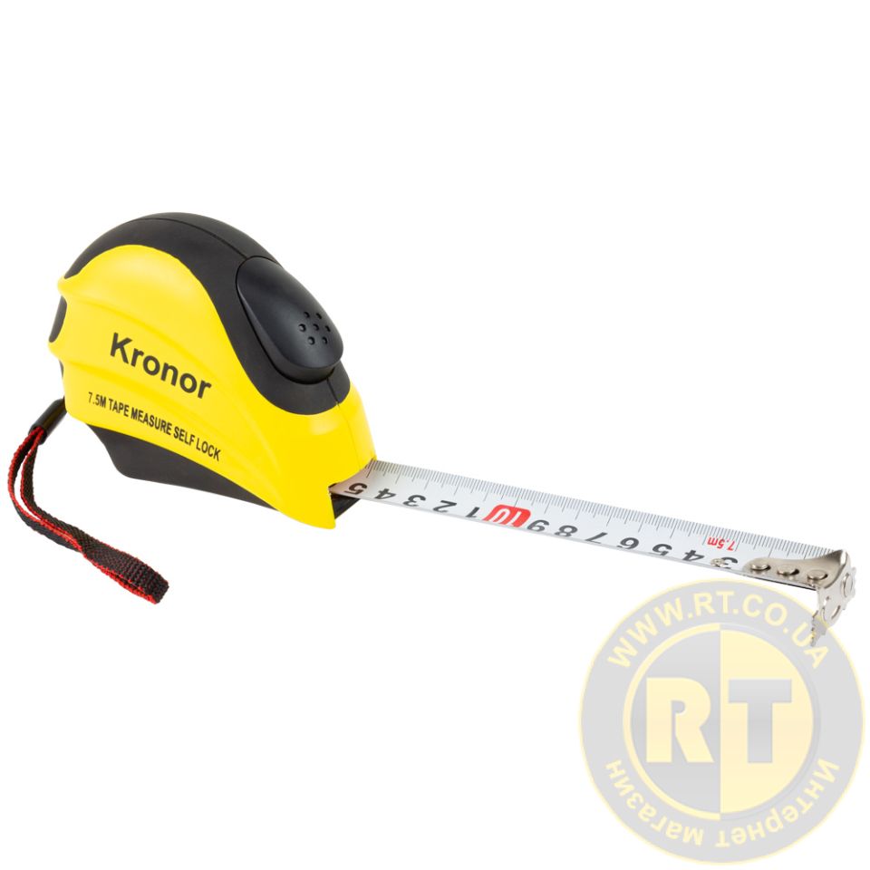 Рулетка магнітна гумова з автостопом 7.5м×25мм KRONOR (3824021) призначена для вимірювання.