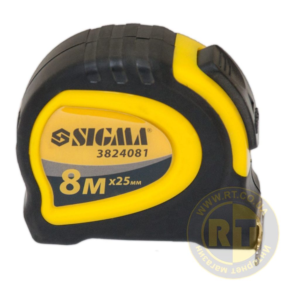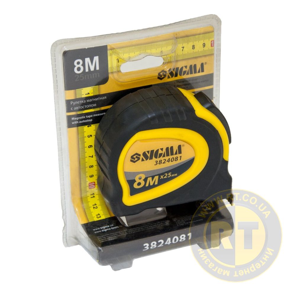 Рулетка магнітна гумова з автостопом 8м×25мм SIGMA (3824081) призначена для вимірювальних робіт.