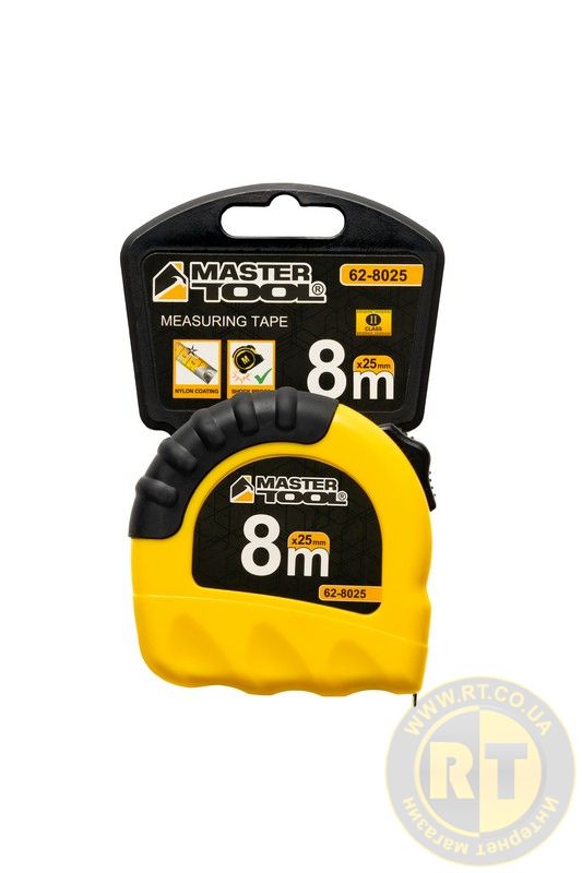Рулетка Shiftlock 8 м х 25 мм фіксатор полотна нейлонове покриття MASTERTOOL 62-8025