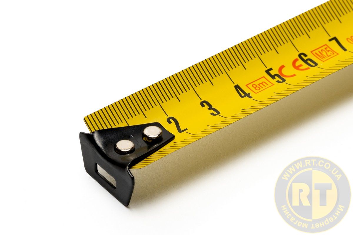 Вимірювальна стрічка виготовлена з міцної сталі та покрита захисним нейлоновим шаром, який підвищує стійкість до стирання, корозії та механічних пошкоджень. Ширина полотна 25 мм гарантує високу жорсткість, що дозволяє проводити точні вимірювання на значній відстані без перегинів.