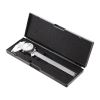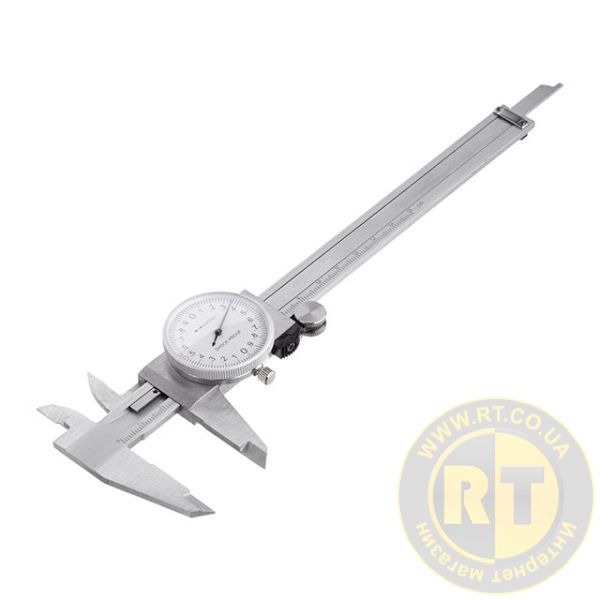 Штангенциркуль виготовлений з високоякісної нержавійної сталі, яка стійка до іржі, не схильна до стирання та характеризується високим ресурсом роботи. Метрична шкала вигравіювана, легко зчитується та не стирається з часом. Великий циферблат показує заміри з точністю 0.02 мм.