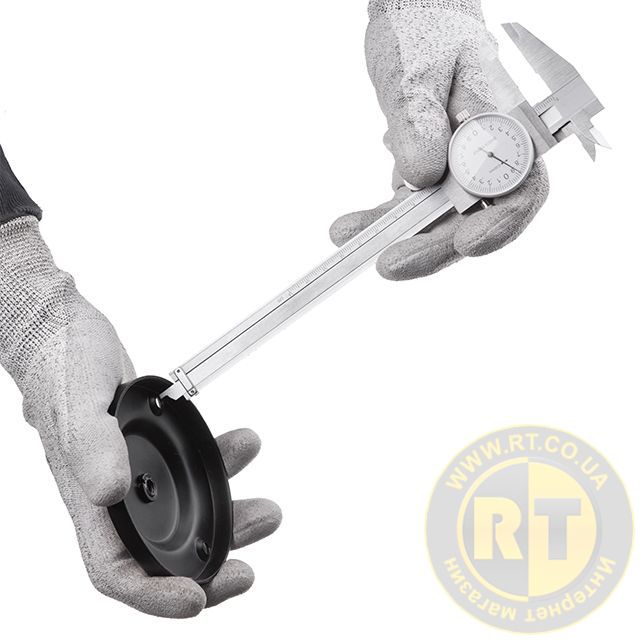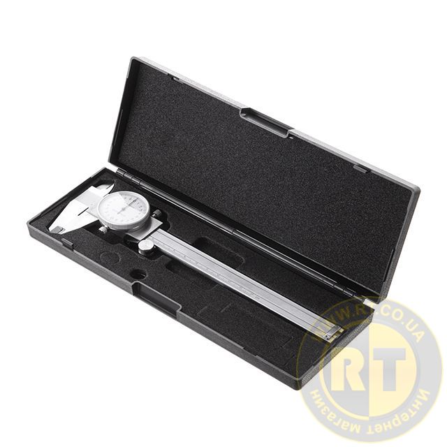 Штангенциркуль виготовлений з високоякісної нержавійної сталі, яка стійка до іржі, не схильна до стирання та характеризується високим ресурсом роботи. Метрична шкала вигравіювана, легко зчитується та не стирається з часом. Великий циферблат показує заміри з точністю 0.02 мм.
