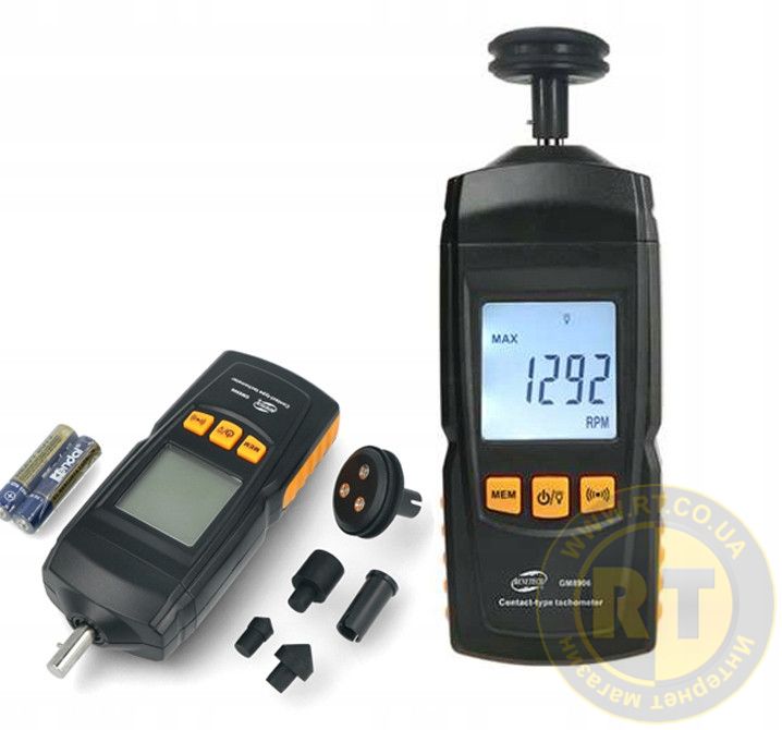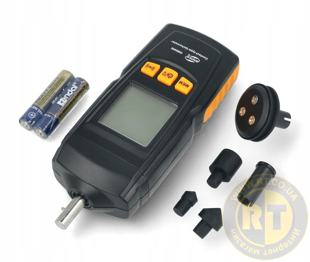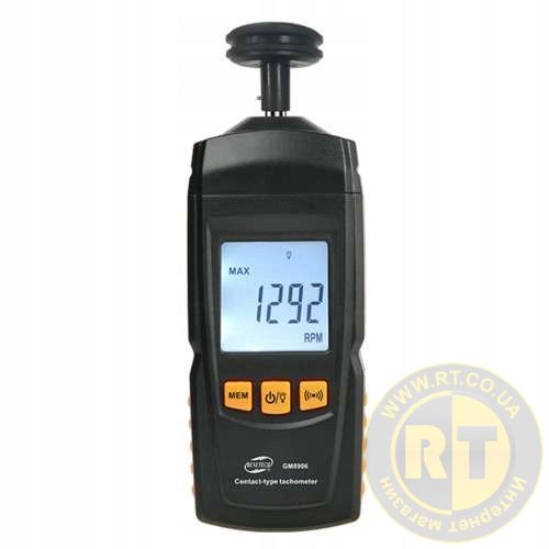 GM8906 - тахометр призначений для контактного вимірювання швидкості обертання в діапазоні: від 0,5 до 19999 rpm.