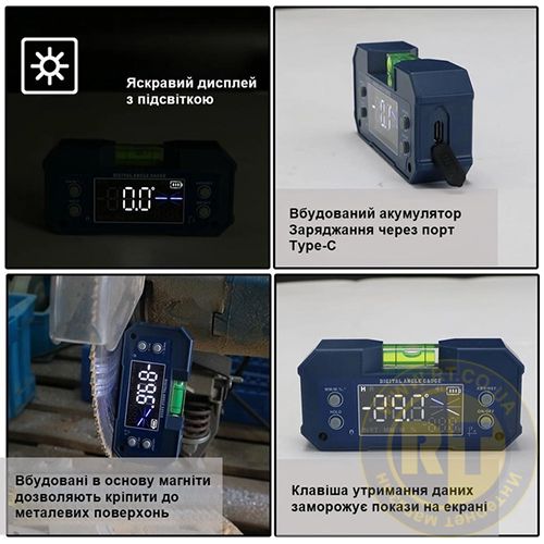 Цифровий багатофункціональний кутомір-рівень (4*90°, 2 магніти) PROTESTER 5346