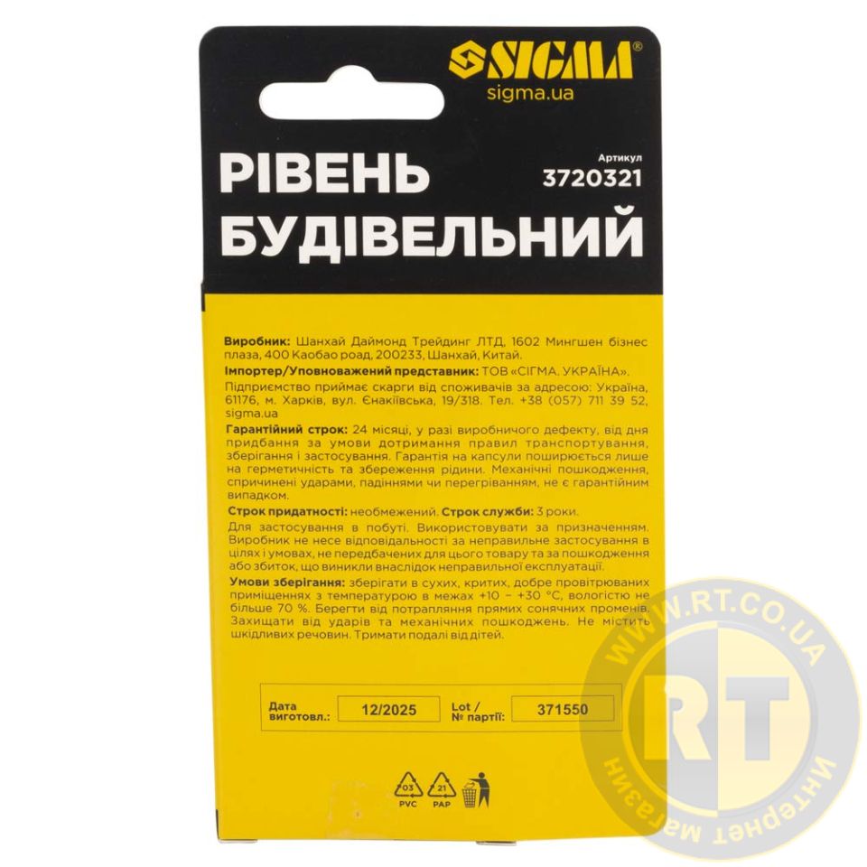 ![]() | Рівень магнітний 2 капсули 15см SIGMA 3720331. Докладніше... | 15 | - | Немає в наявності |