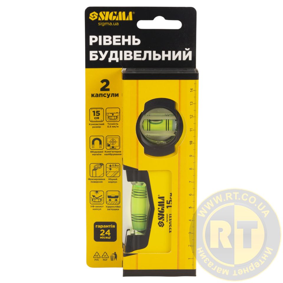 Рівень магнітний 2 капсули 15см SIGMA 3720331