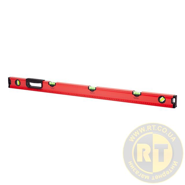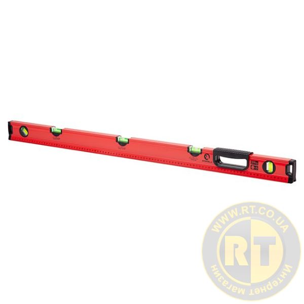 Корпус рівня виготовлений з міцного алюмінію, що гарантує зносостійкість та довговічність виробу. V-подібний паз сприяє щільному приляганню рівня до округлих деталей, труб, що дозволяє виставити заданий кут. Нанесена метрична шкала дозволяє використовувати рівень як лінійку та заміряє відстані.