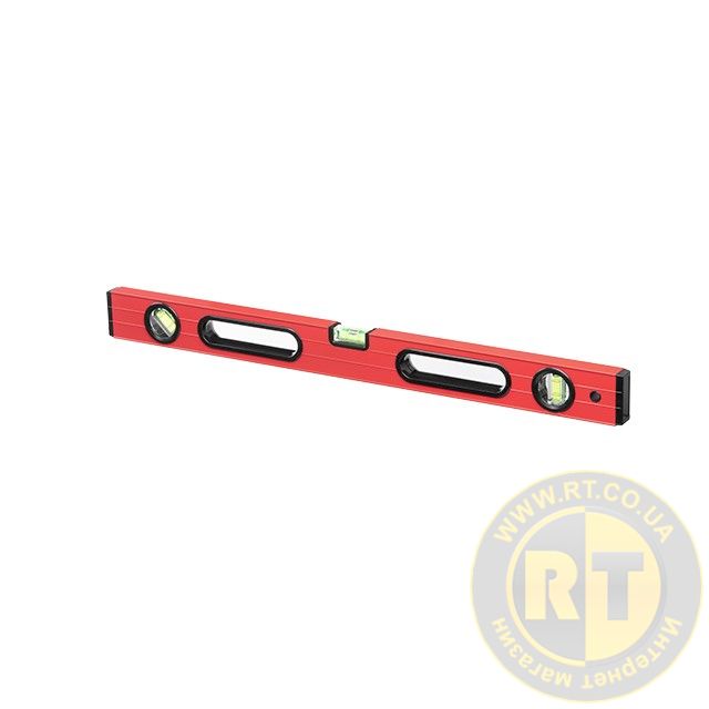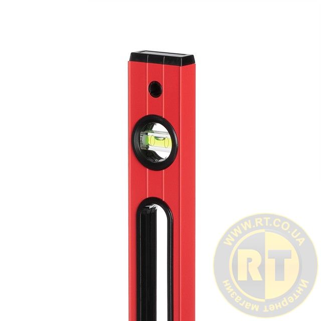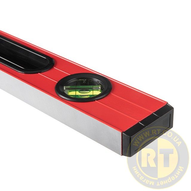 Корпус рівня виготовлений і міцного екструдованого алюмінію, що гарантує зносостійкість та довговічність виробу. Ребра жорсткості підсилюють конструкцію та роблять рівень стійким до механічних пошкоджень. Фрезерування однієї сторони рівня забезпечує максимально щільне прилягання до поверхні, що полегшує роботу майстра. Рівень легкий, не обтяжує руки, ним зручно працювати тривалий час.