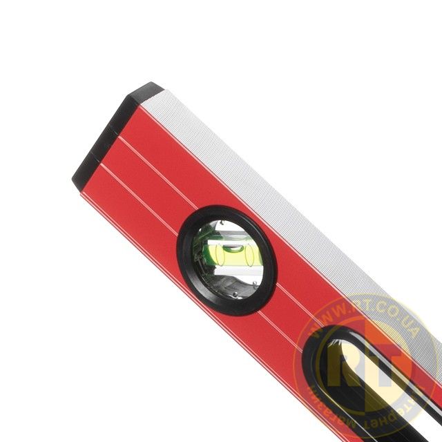 Корпус рівня виготовлений і міцного екструдованого алюмінію, що гарантує зносостійкість та довговічність виробу. Ребра жорсткості підсилюють конструкцію та роблять рівень стійким до механічних пошкоджень. Фрезерування однієї сторони рівня забезпечує максимально щільне прилягання до поверхні, що полегшує роботу майстра. Рівень легкий, не обтяжує руки, ним зручно працювати тривалий час.