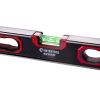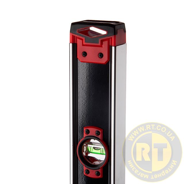 Рівень оснащений трьома капсулами: двома вертикальними та однією горизонтальною, що дозволяє працювати у вертикальній та горизонтальній площинах. При цьому горизонтальна колба збільшена і має шість відміток для зручного зчитування показників під будь-яким кутом, а дві вертикальні колби дозволять не завертати зайвий раз рівень при вимірюваннях.