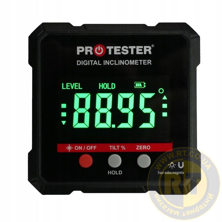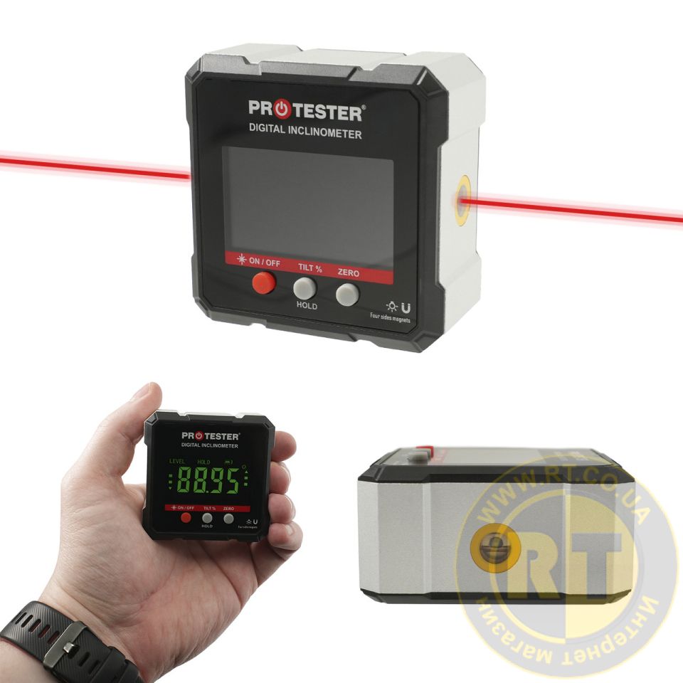 Цифровий кутомір (інклінометр) з лазером (4*90°, 4 магніти) PROTESTER 5341-90