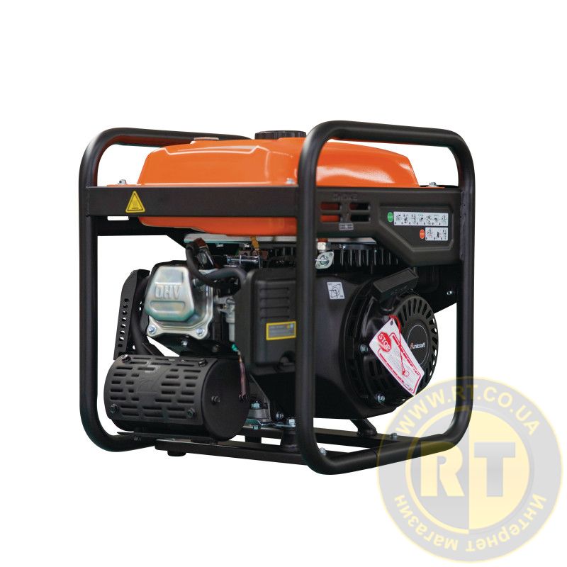 На панелі управління розташовані світлові індикатори вихідної напруги, перевантаження та відсутності олії.