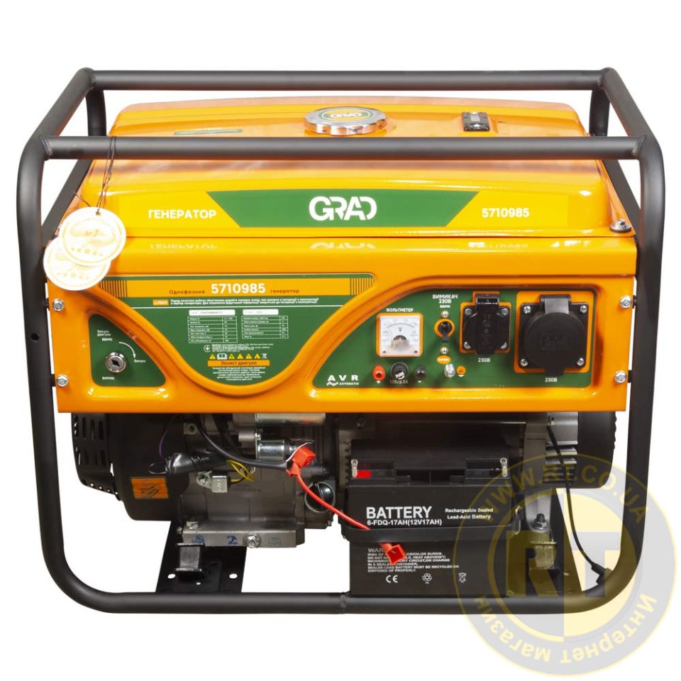 Генератор бензиновий 230В 7.0/7.5кВт 4-х тактний електрозапуск GRAD 5710985