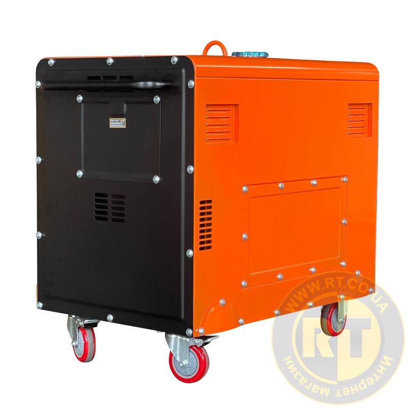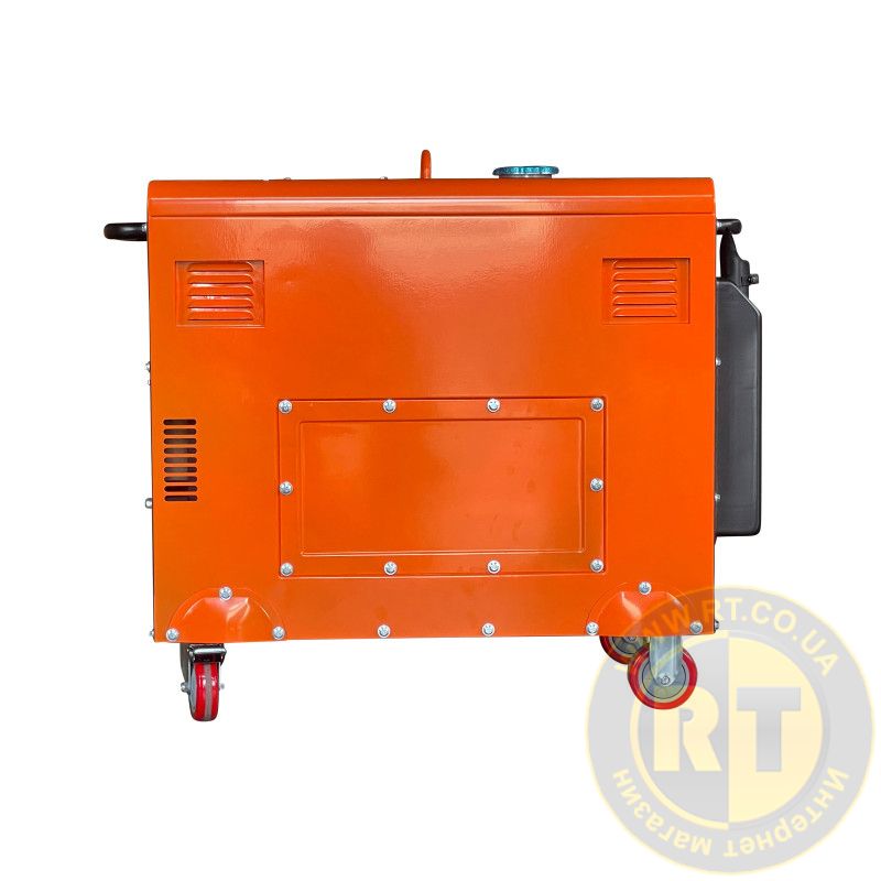 Стійке шасі з двома поворотними роликами дозволяє переміщати генератор у межах робочої зони.