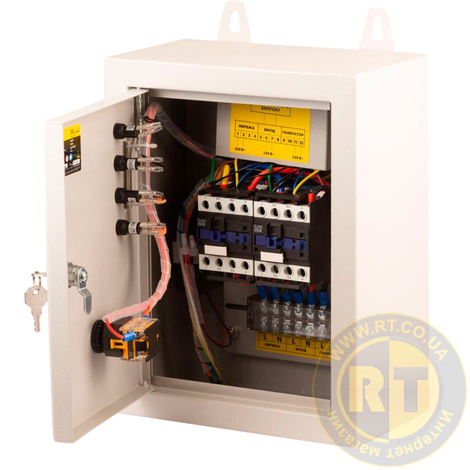- Блок забезпечує: автоматичний запуск генератора у разі збою або припинення подачі електроенергії у спільній мережі, перемикання навантаження на живлення від генератора, а також зворотне перемикання навантаження на загальну мережу при відновленні подачі електроенергії та зупинку генератора