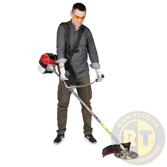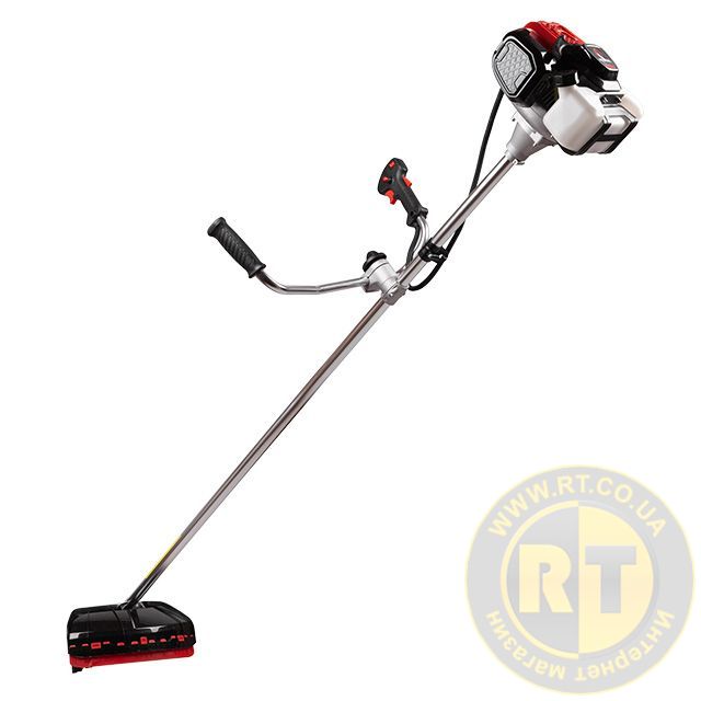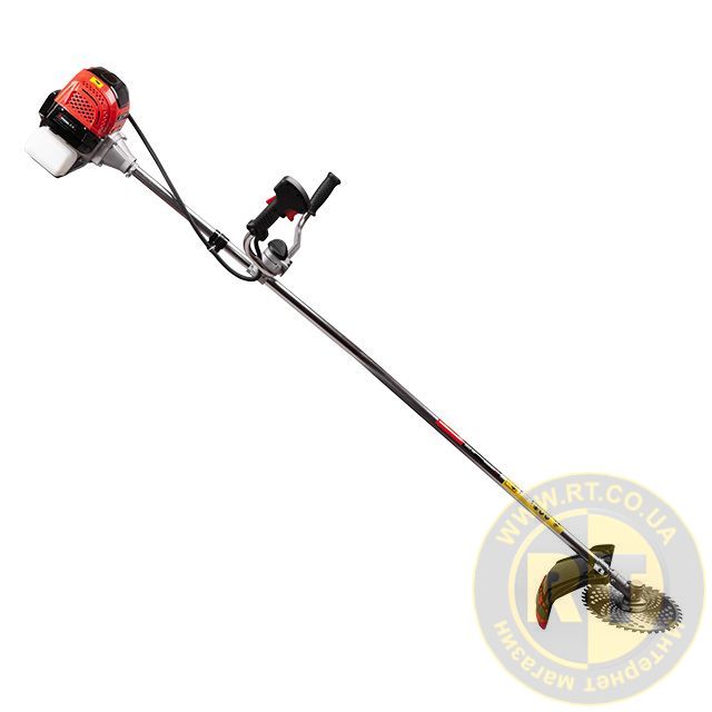 Бензокоса оснащена двотактним двигуном, потужністю 1850 Вт і забезпечує відмінну продуктивність та ефективну роботи навіть з жорсткою і густою травою, очеретом тощо. Об'єм паливного бака 1,2 л з витратою до 1 л/год. під великим навантаженням.