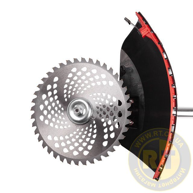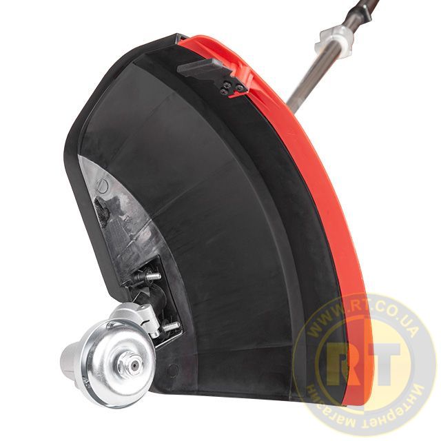 Захисний кожух виготовлений з ударостійкого пластику, він закриває різальне обладнання, таким чином захищає користувача від викиду трави та інших предметів.