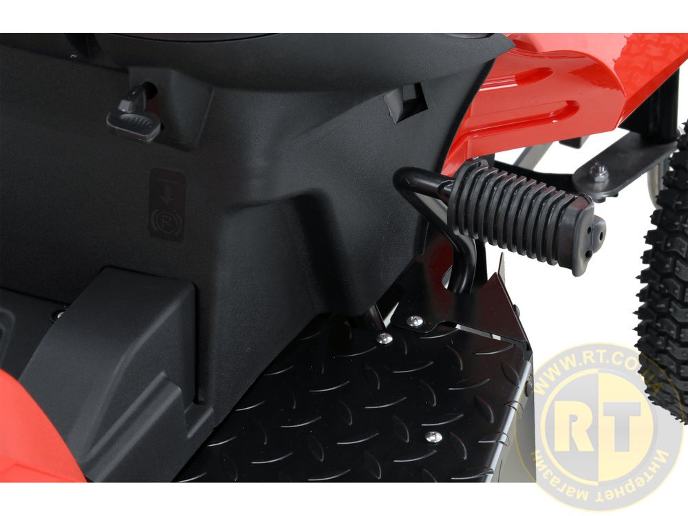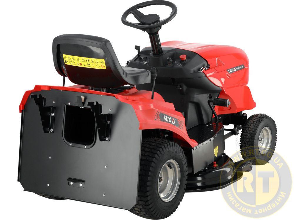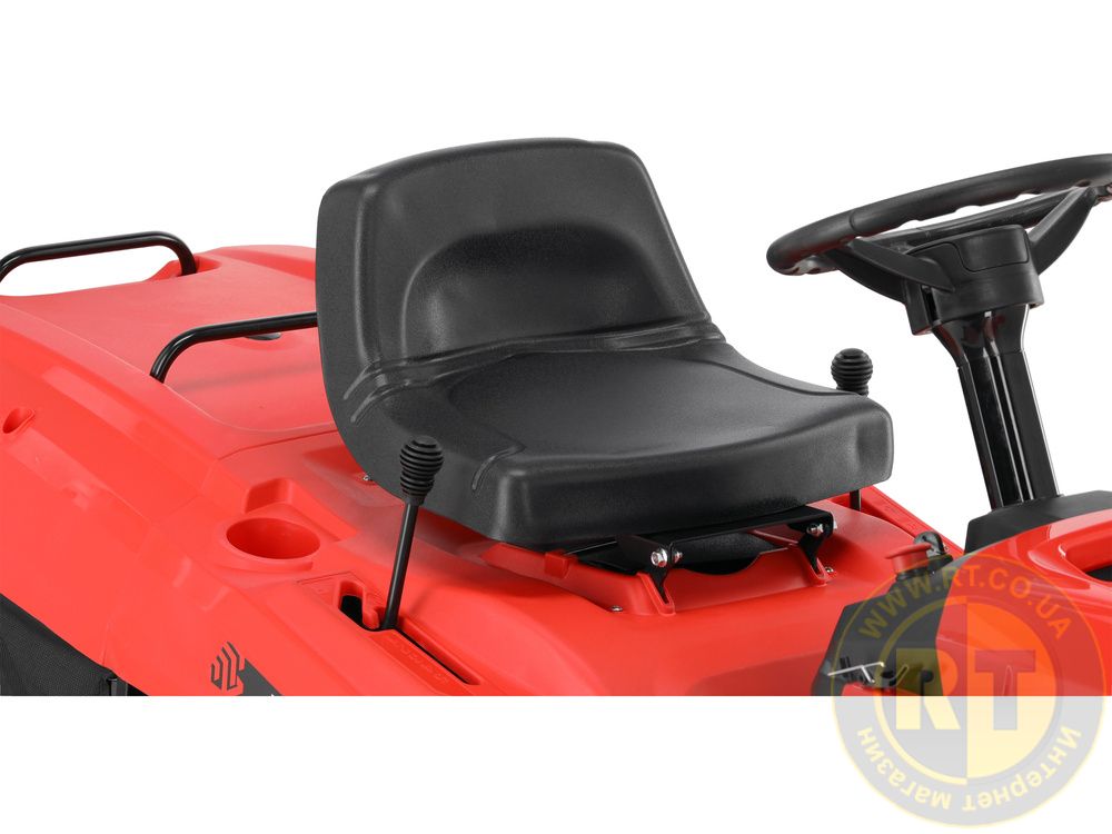 Трактор обладнаний 5-ступінчастою коробкою передач. Він має електричний стартер і просторий кошик 220 літрів, який значно полегшує колекцію трави з великих площ.