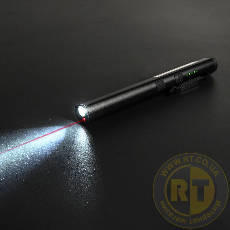 Ліхтарик кишеньковий світлодіодний (LED) акумуляторний з лазером та ультрафіолетовим світлом PROTESTER PRO-FL0305S - багатофункціональний інструмент для побуту, роботи, хобі та демонстраційних цілей.