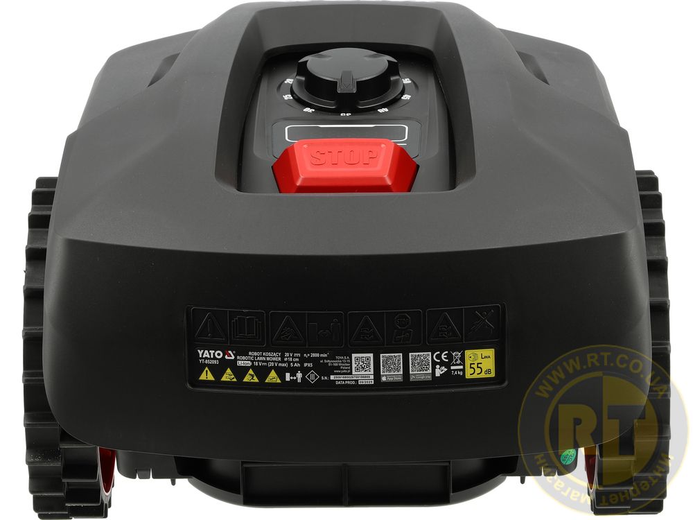 Система підвіски плаваючого ножа регулює висоту скошування відповідно до нерівностей місцевості, а літій-іонний акумулятор ємністю 5 Ah забезпечує тривалий час роботи та високу ефективність.