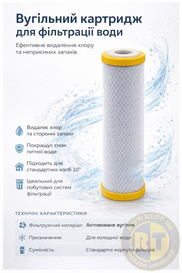 Картридж із спресованого активованого вугілля 2,5"×10" AQUATICA 9772132