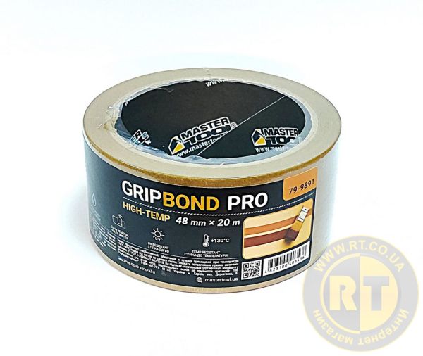 Стрічка малярська високотемпературна GripBond Pro High-Temp 48мм×50м коричнева MASTERTOOL 79-9892