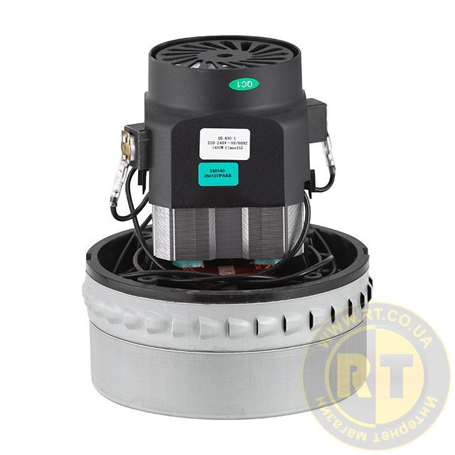 Мотор електричний, потужністю 1.4 кВт, призначений для заміни двигуна, що вийшов з ладу, в будівельних пилососах. Використовується для відновлення повної працездатності та ефективного всмоктування будівельного сміття, пилу, вологого збирання.