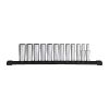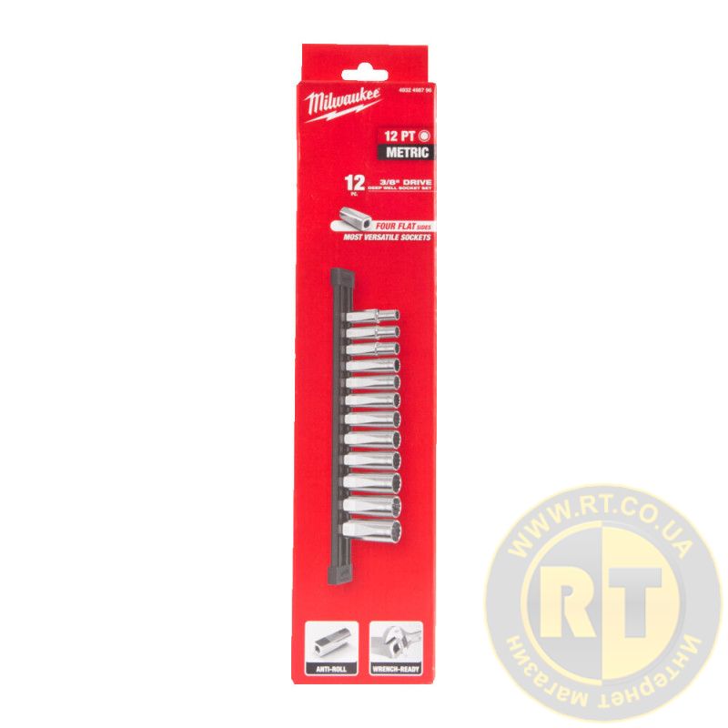 Набір головок торцевих хромованих ⅜″ MILWAUKEE, (12 гран.), подовжені, планка (12шт)