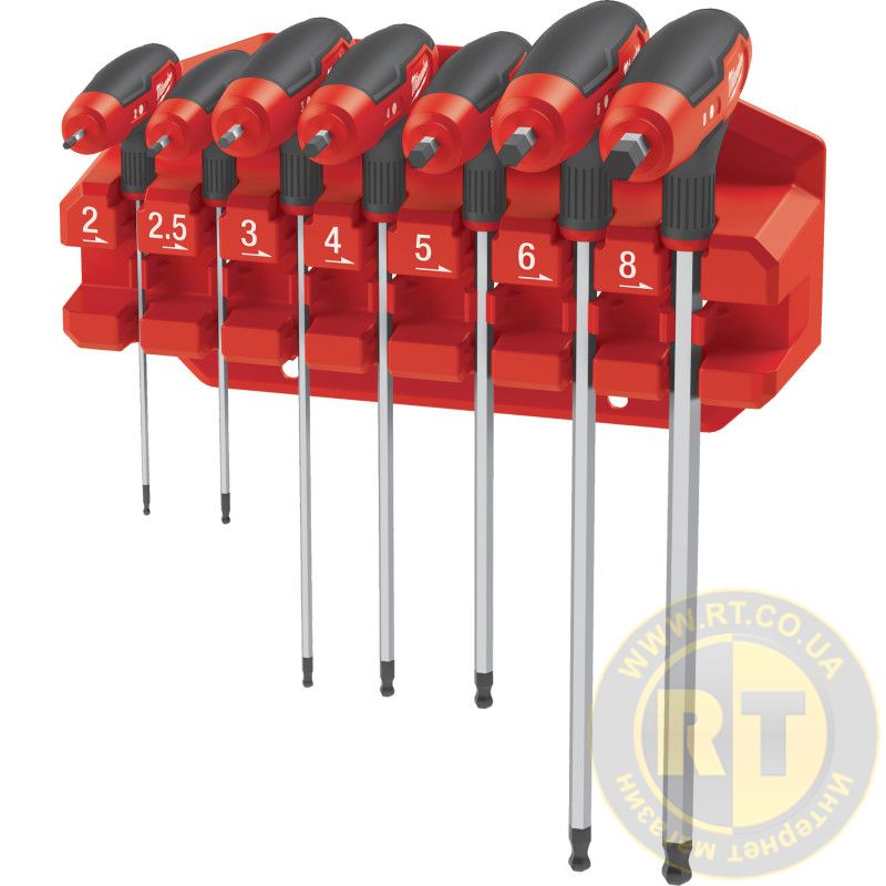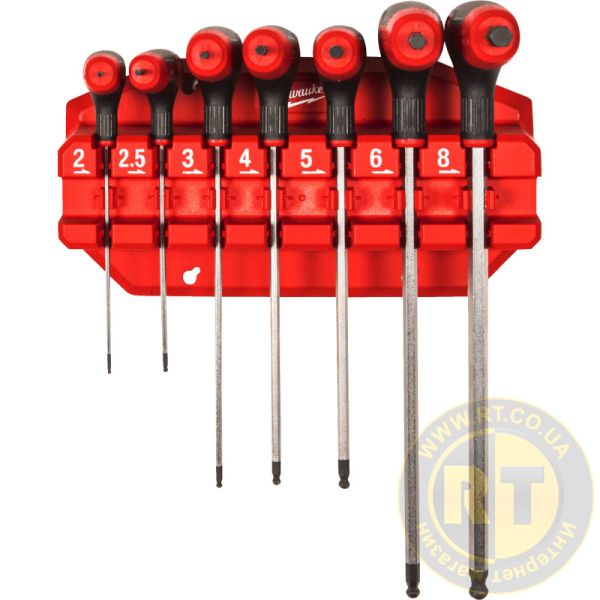 Набір ключів Г-подібних MILWAUKEE з комфортною ручкою, Hex з кулею, (7шт)