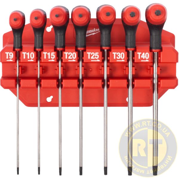 Набір ключів Г-подібних MILWAUKEE з комфортною ручкою, TORX з кулею, (7шт)