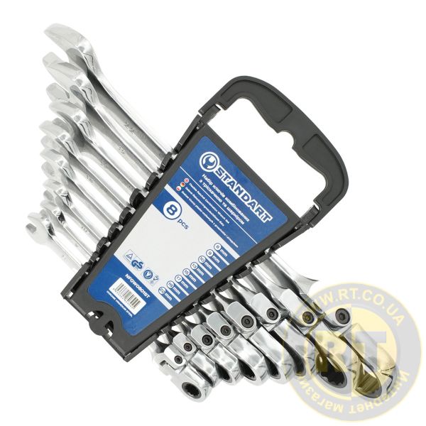 Набір ключів комбінованих з тріскачкою та шарніром 8-10,13,15,17,19,22мм 8од. на холдері СТАНДАРТ NFGW0801ST