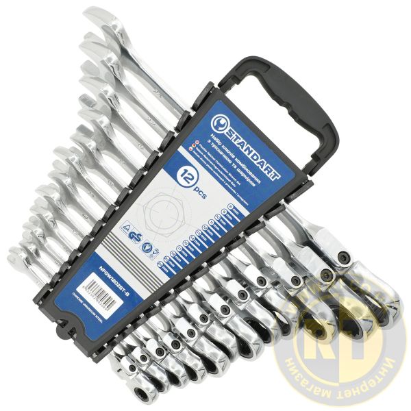 Набір комбінованих ключів з тріскачкою та шарніром СТАНДАРТ NFGW1202ST-B є оптимальним рішенням для якісного та ефективного виконання ремонтних та монтажних робіт. Завдяки вбудованій тріскачці і шарнірної конструкції, що рухається, цей набір забезпечує максимальний комфорт навіть у найважчих умовах експлуатації.