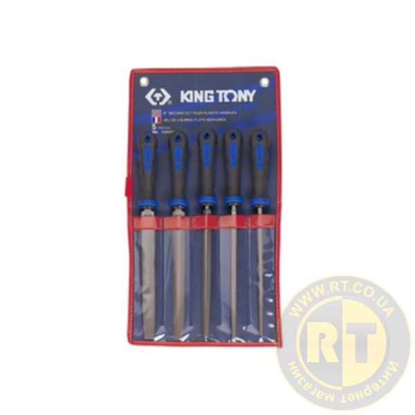 Набір напильників 200 мм, двокомпонентні ручки, 5 предметів KING TONY