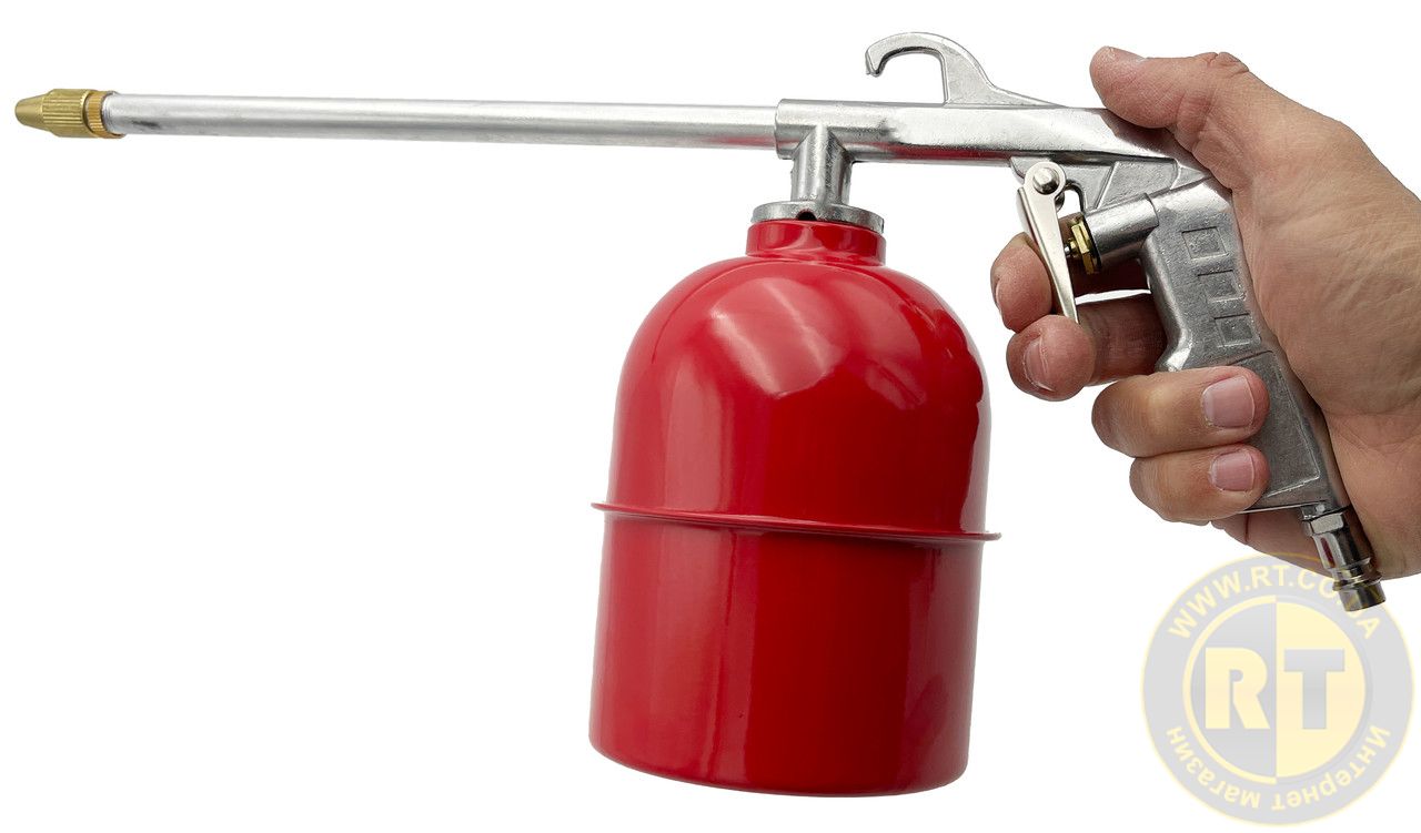 - Пістолет для нанесення рідини з нижнім бачком — підходить для миючих рідин, антикорозійних засобів і т.д.