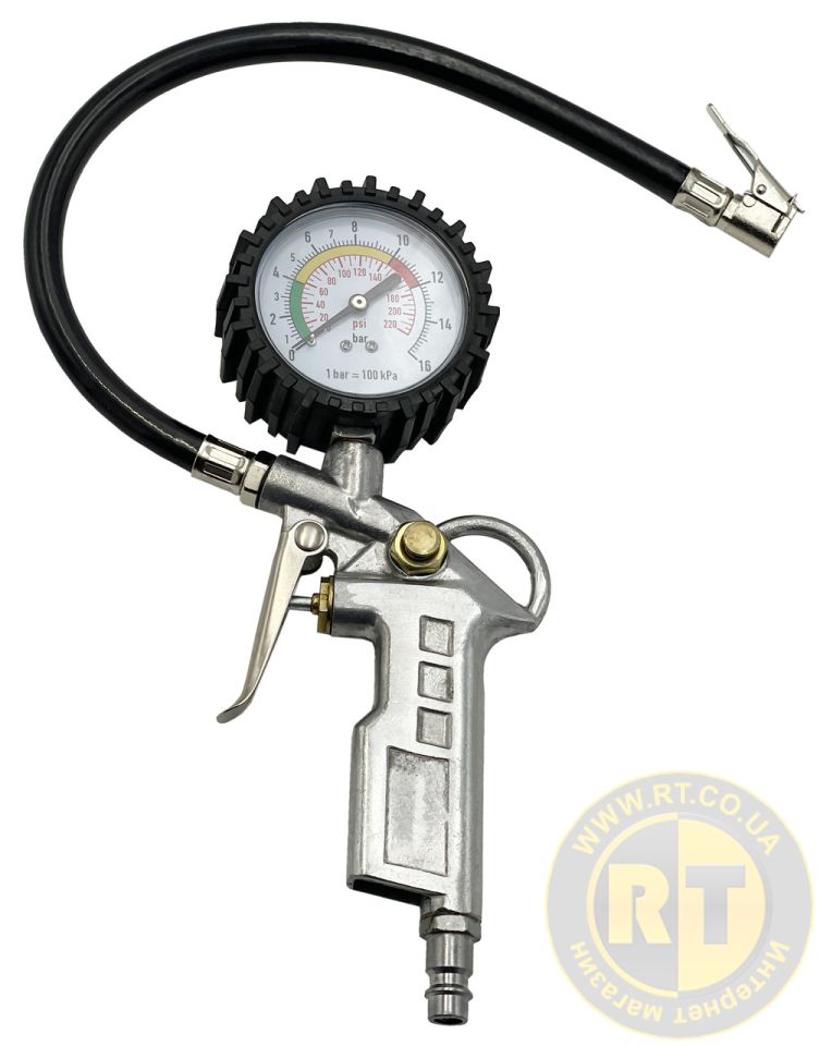 - Пістолет для закачування шин з манометром - дозволяє контролювати та підтримувати потрібний тиск у шинах.