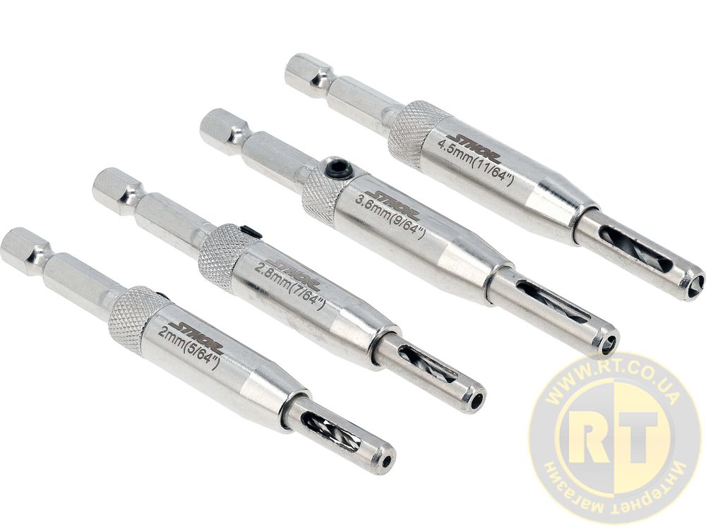 Набір із 4 самоцентруючих свердлів, призначених для свердління дерева, пластику та м'яких металів.