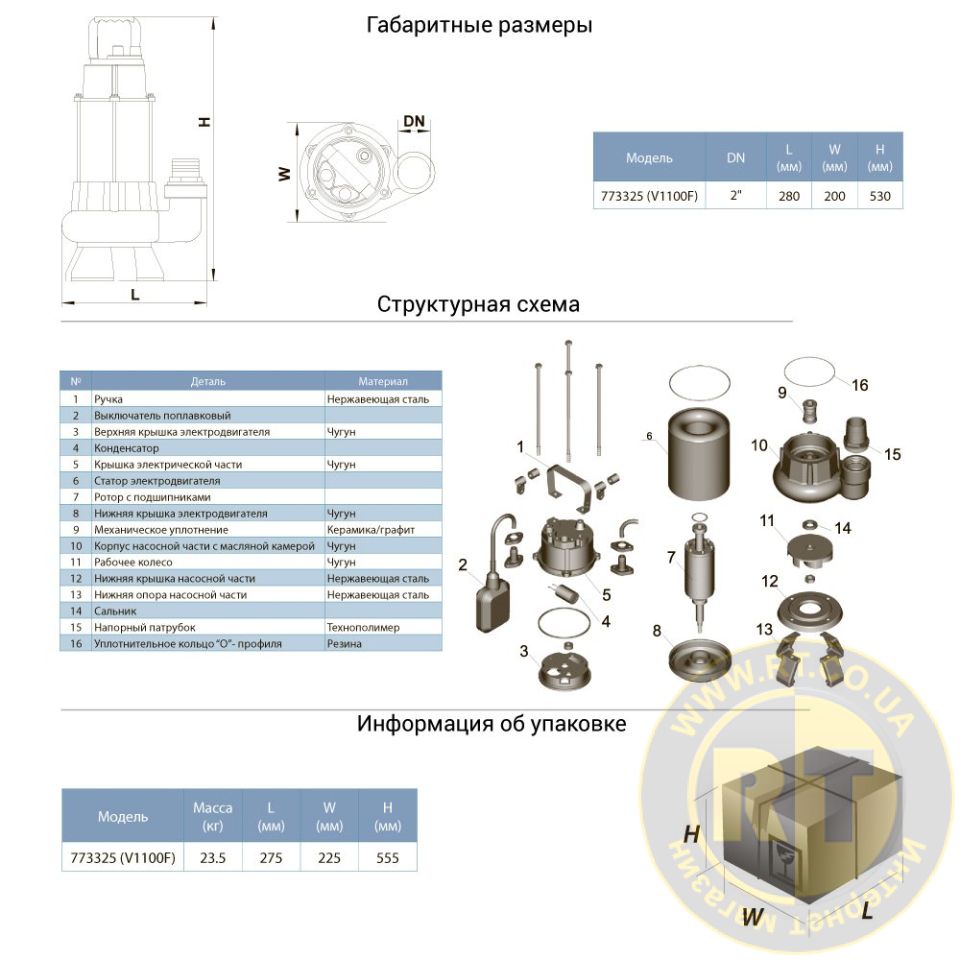 - Корпус насоса: чавун/нержавіюча сталь AISI 304