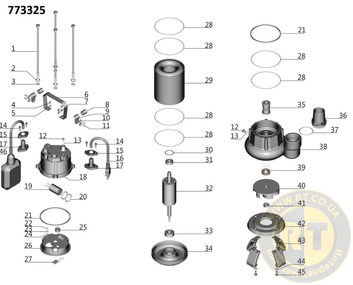 - Поплавковий вимикач забезпечує автоматичне увімкнення та вимкнення насосів даної серії в залежності від рівня води