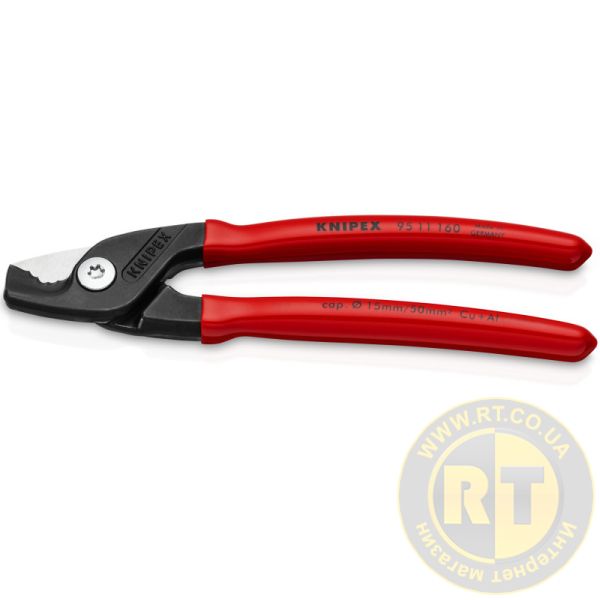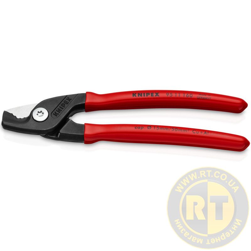 Ножиці для різання кабелів Ø15мм / 50мм², 160мм KNIPEX, 95 11160 SB, фосфатовані